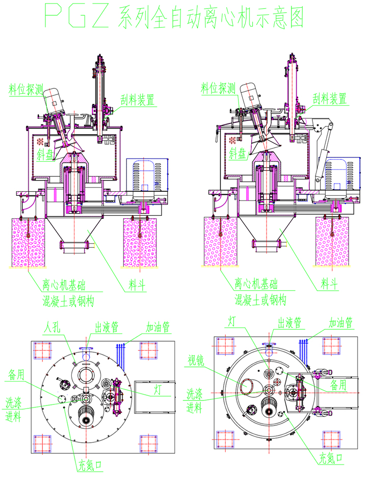 4.布料方式選擇:a斜盤布料方式,布料及洗滌更加均勻合理, 避免因布料不均引起震動。b進料管進料(可設置分層進料),水洗管洗滌。